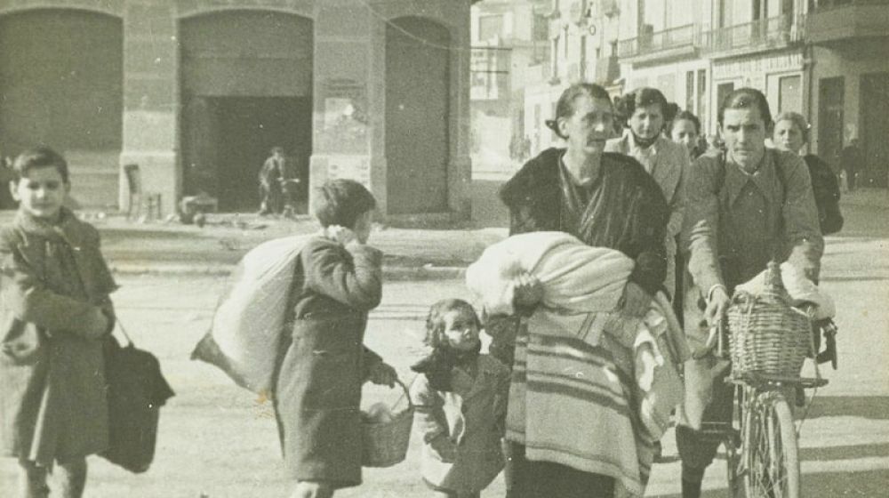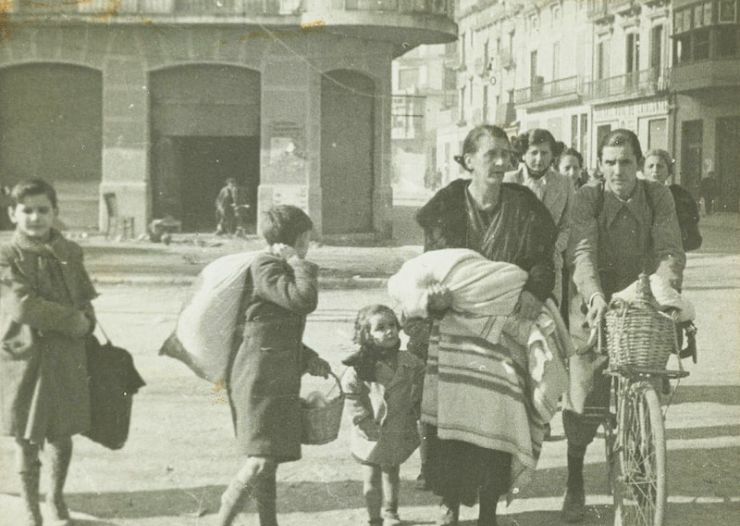 Grup de persones fugint dels bombardejos a Girona, 1939 (Foto: Ajuntament de Girona. CRDI)